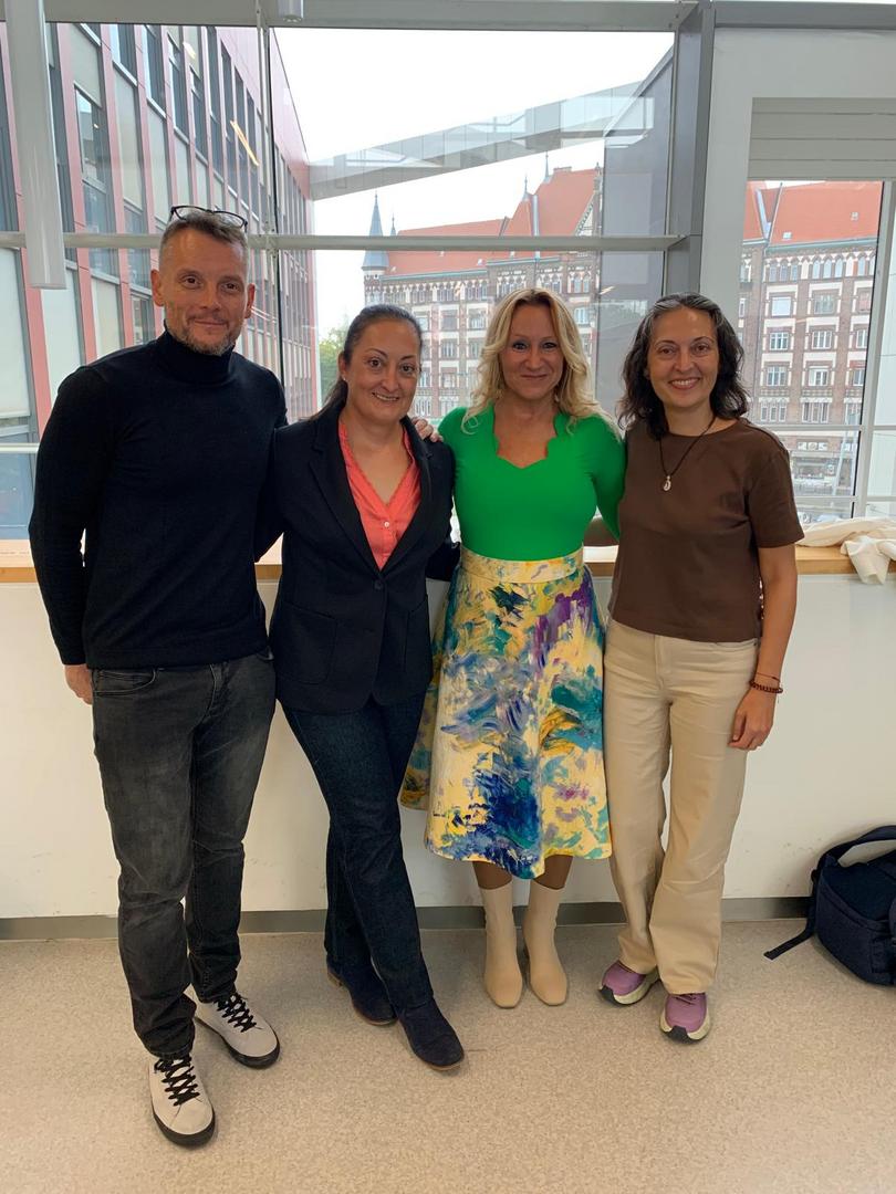 A valenciai Xativá nyelviskolából az Erasmus képzési mobilitás keretében három napra érkezett vendégek részére Ürmösné Simon Gabriella tartott bemutatóórákat és megismertette őket a campussal is. Az angol szaknyelvi bemutatóórák első és másodéves nappali képzésén a sorozatgyilkosok, az agresszió, a vezetők személyi védelme és a fehérgalléros bűnözés témaköreiben zajlottak, míg a doktori képzésen a kiber- és a gazdasági bűncselekményekről. A valenciai delegációnak, Ürmösné Simon Gabriellán kívül, Kovács Hanga és Acsai György tartott szaknyelvi bemutatóórákat. Ezeken, a két spanyol rendőr kolléga is bemutatta hallgatóinknak az eldai Rendőrkapitányságot, a helyi Közlekedésrendészetet, a gyermekvédelmi-, a kutyás-, a környezetvédelmi- és a drón egységeket, valamint a Polgárőrséget (Guardia Civil). Sonia Prada rendőrtiszt emellett prezentálta a saját gyermekvédelmi tevékenységeit is Alicante-ben. Ebből hallgatóink megismerhették a gyermekvédelmi prevenciós kampányokat, az iskolai zaklatásról szóló felvilágosítást, valamint a kisiskolai zónák védelmét. A bemutatóórák után a delegáció találkozott Csaba Zágon Tudományos és nemzetközi osztályvezetővel, Meisami-Horánszki Andrea Nemzetközi főreferenssel, és Nagy György Lektorátusvezetővel. Kovács Sándor r. ezredes campus túrája során a delegáció megtekinthette a MÖRT tanszék speciális termét Tóth Levente Tanszékvezetővel, az Oktatási Központot, a lőteret, és a Rendészeti Oktatási Épület és Kollégiumot.