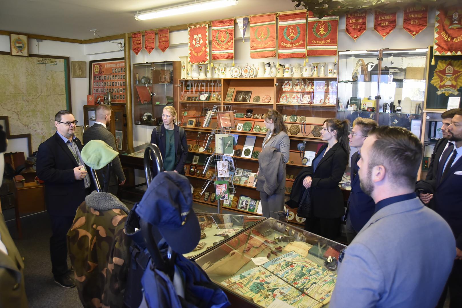 A látogatás egyik állomásaként a vendégek felkeresték a Határőr Emlékszobát, ahol részletes tájékoztatást kaptak a magyar határőrizet történetéről és a korábbi eljárási gyakorlatokról.