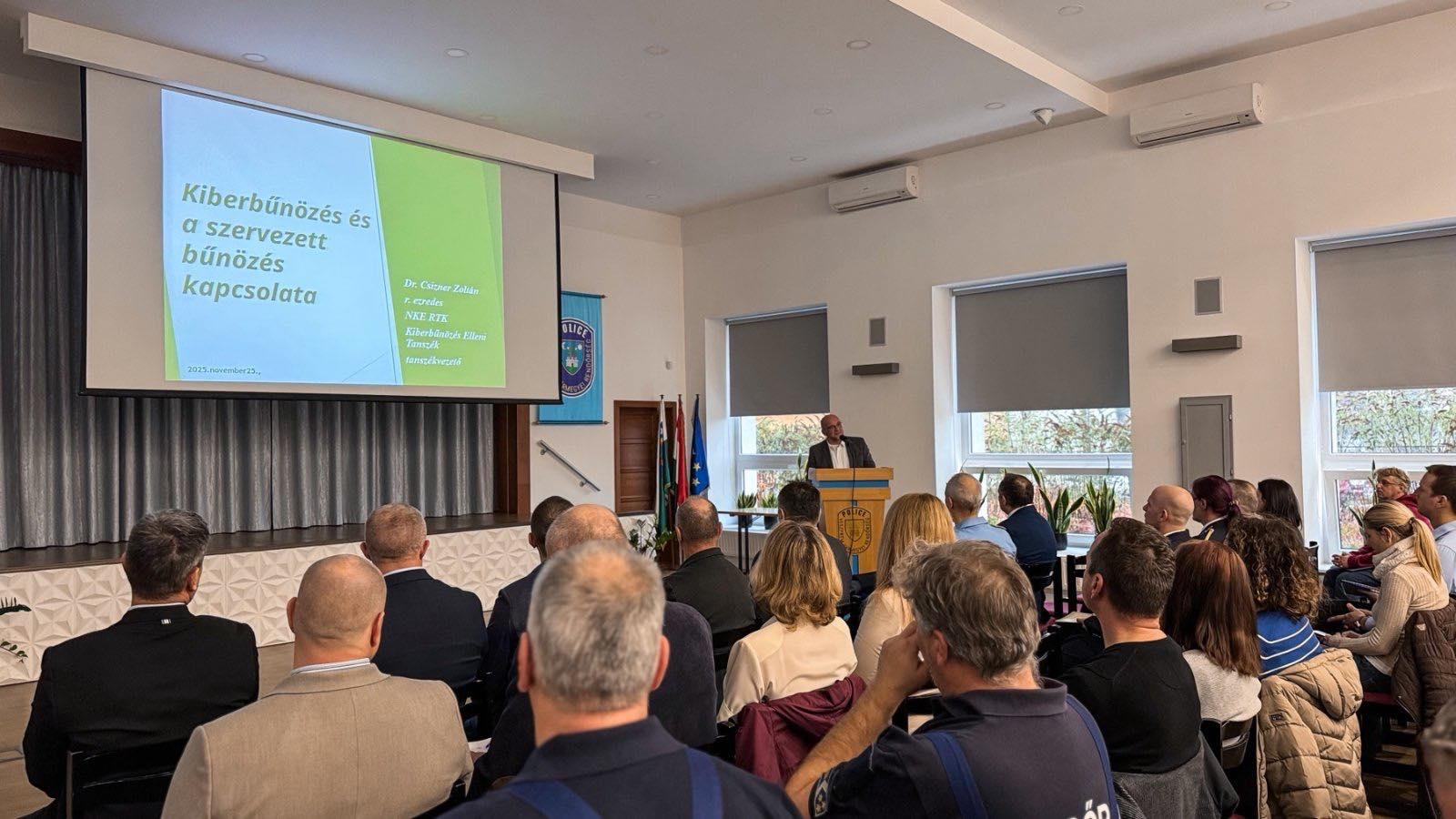 A főkapitányság által november végére, a bűnügyi szolgálata munkatársainak szervezett eseményén előadott karunk Kiberbűnözés Elleni Tanszékének vezetője, Csizner Zoltán r. ezredes is.