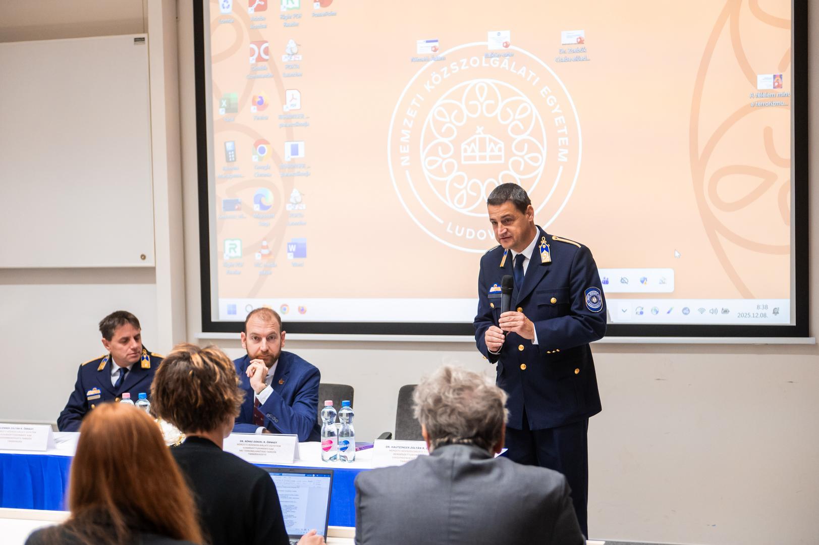 Hautzinger Zoltán r. ezredes, az NKE RTK Idegenrendészeti Tanszékének vezetője megnyitóbeszédében hangsúlyozta, hogy az ilyen jellegű események kiemelt jelentőségűek a tanszék számára, mert jelentős hozzáadott értéket képviselnek a kutatási tevékenység szempontjából. Kifejtette, hogy ezek a programok elősegítik az oktatók és a hallgatók kutatói teljesítményének fejlődését, és hosszú távon is hasznosak lesznek a szakmai munkában. Az ünnepek közeledtére utalva Hautzinger Zoltán úgy fogalmazott, hogy a mai alkalom lehetőséget teremt arra, hogy értékes gondolatokkal és tapasztalatokkal gazdagítsák egymást a résztvevők. Hozzátette: bízik benne, hogy mindenki profitálni fog a rendezvényből.
