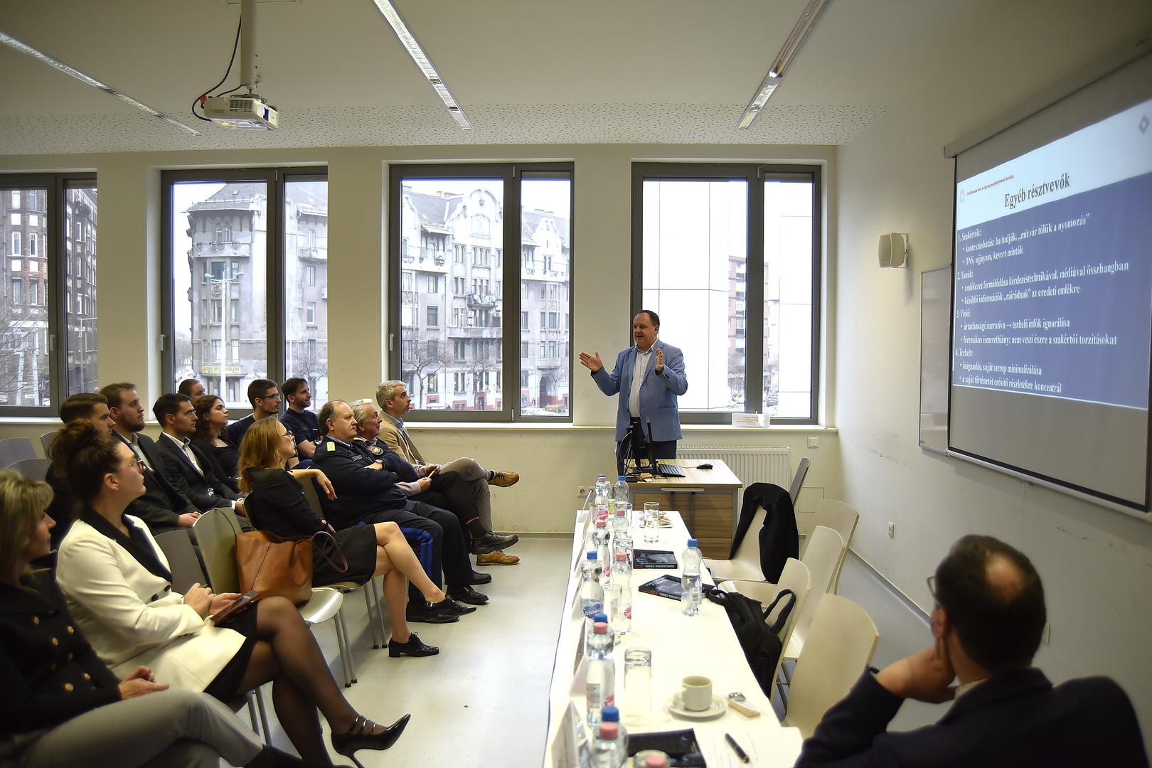 A téma elméleti és pszichológiai hátterét Herke Csongor mutatta be, aki a confirmation bias – a megerősítési torzítás – büntetőeljárási következményeit elemezte. Részletesen ismertette a torzítás hatásait a nyomozó hatóság „alagút-látására”, az ügyészség vádhoz való ragaszkodására és a bíróság első narratívába zártságára. Felhívta a figyelmet; a torzítás a bizonyítékok szelektív értékeléséhez és rendszerszintű tévedésekhez vezethet, és javaslatot tett szervezeti, eljárási és technológiai – akár mesterséges intelligencián alapuló – megelőző eszközök alkalmazására.
