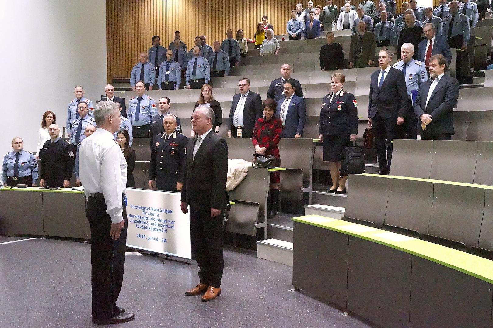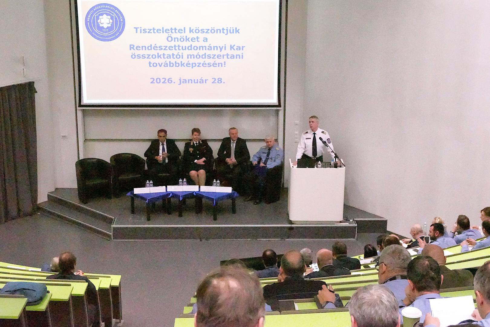 A rendezvényt Dr. Szegedi László oktatási rektorhelyettes nyitotta meg, majd Dr. Kovács Gábor r. vezérőrnagy dékán köszöntötte a megjelent oktatókat és az előadókat.